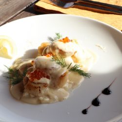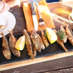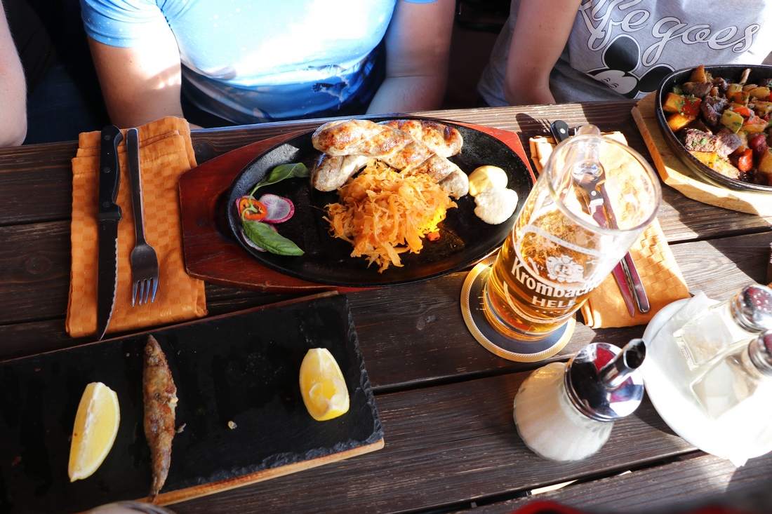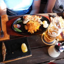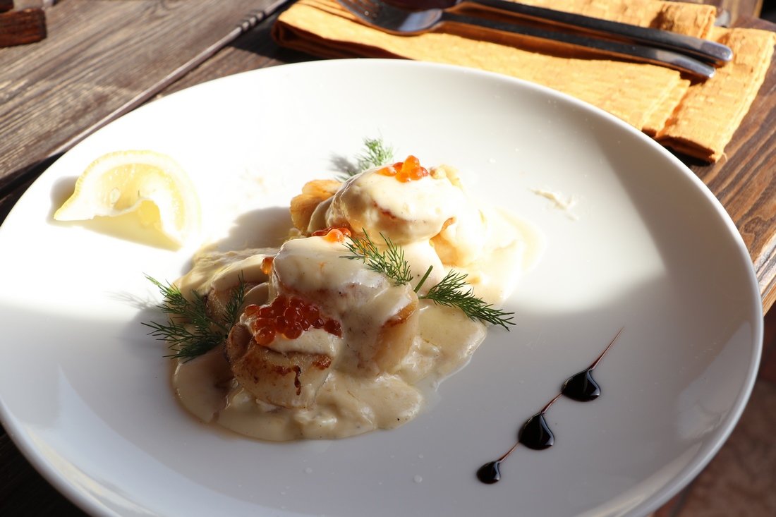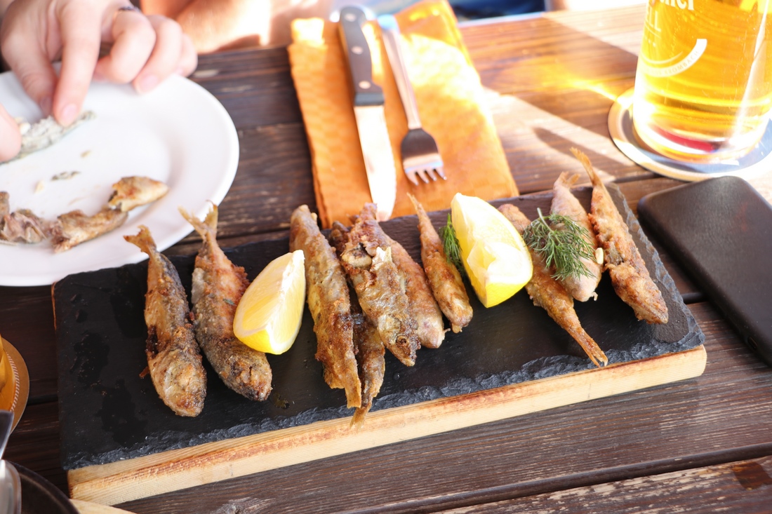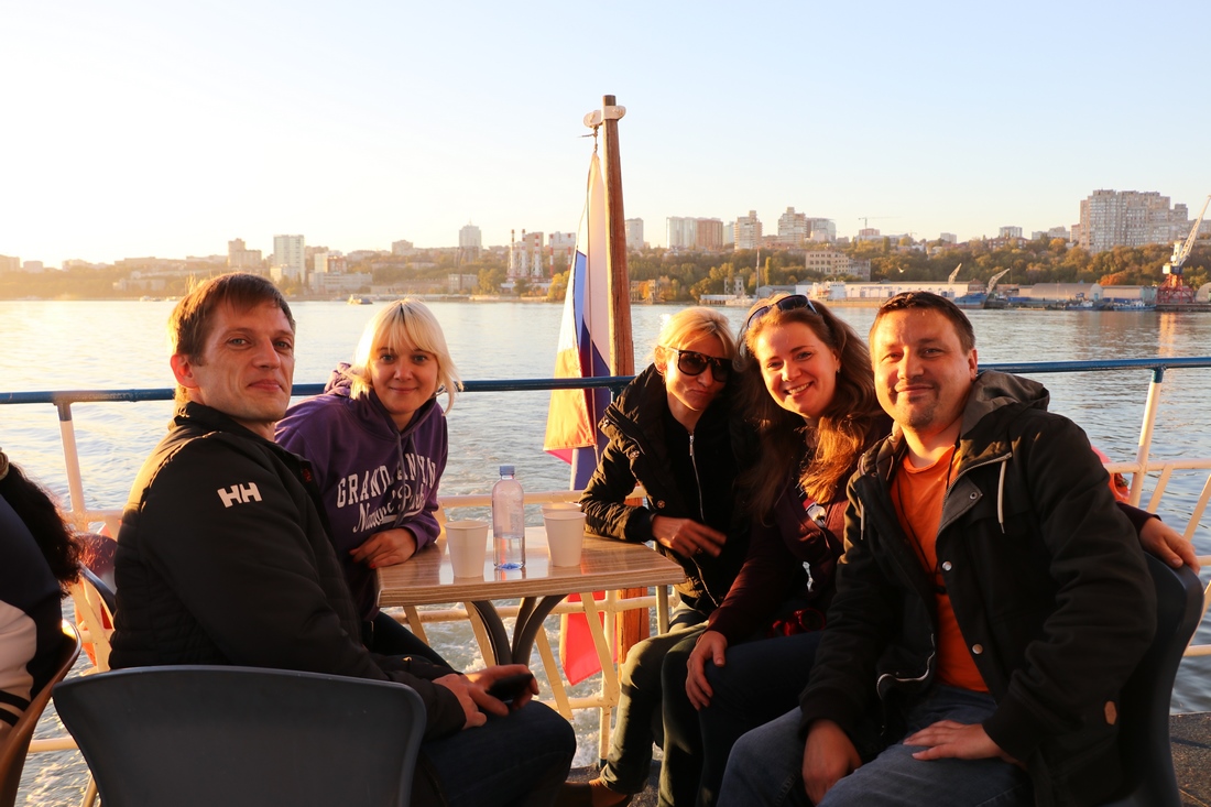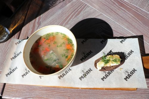 Это фото сделано в Ресторане «Маяк». Он находится в самом центре набережной и цены там довольно высокие. Еда и интерьеры: