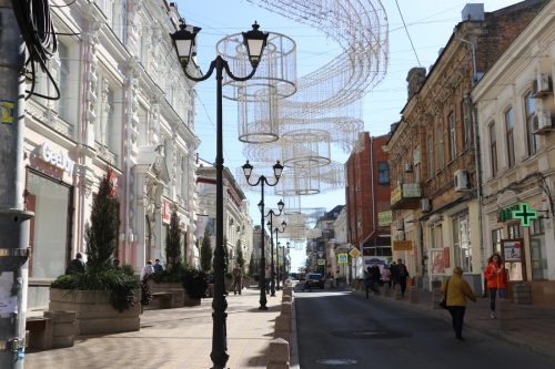 После колеса идем по пешеходной улице Пушкина. Под ногами: