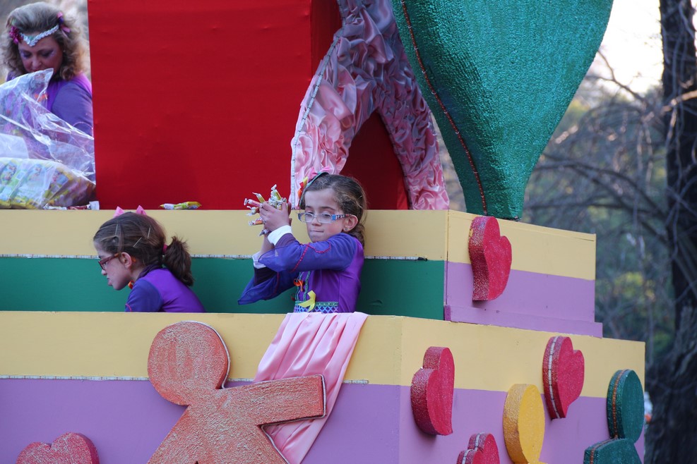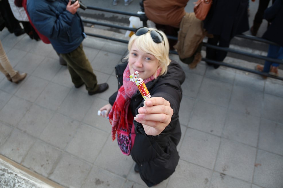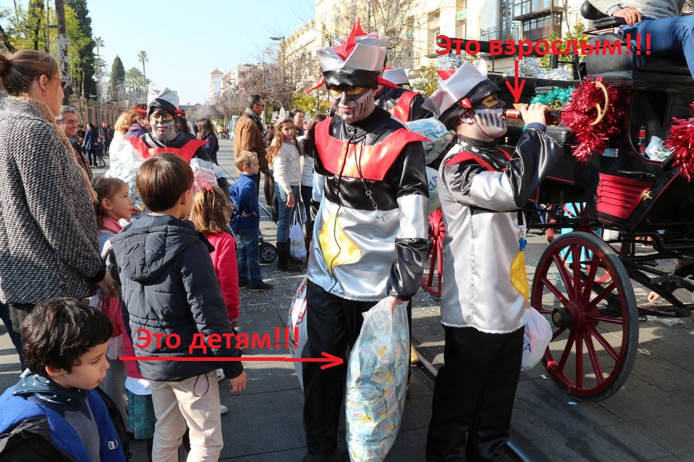 Потом поехали повозки, с которых разбрасывали конфеты: