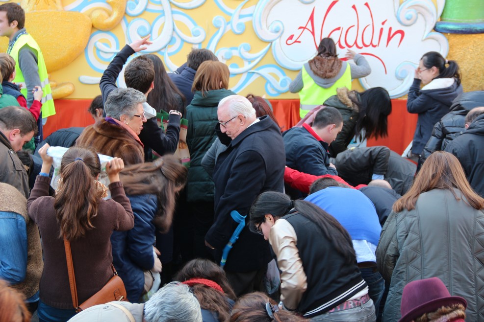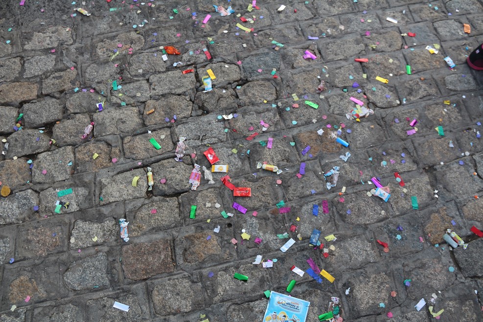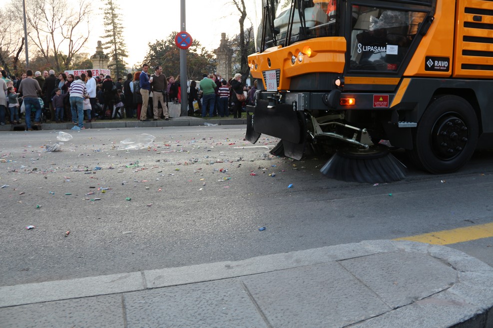 После их прохода кавалькада закончилась, и все непойманные конфеты собрали мусорные машины: