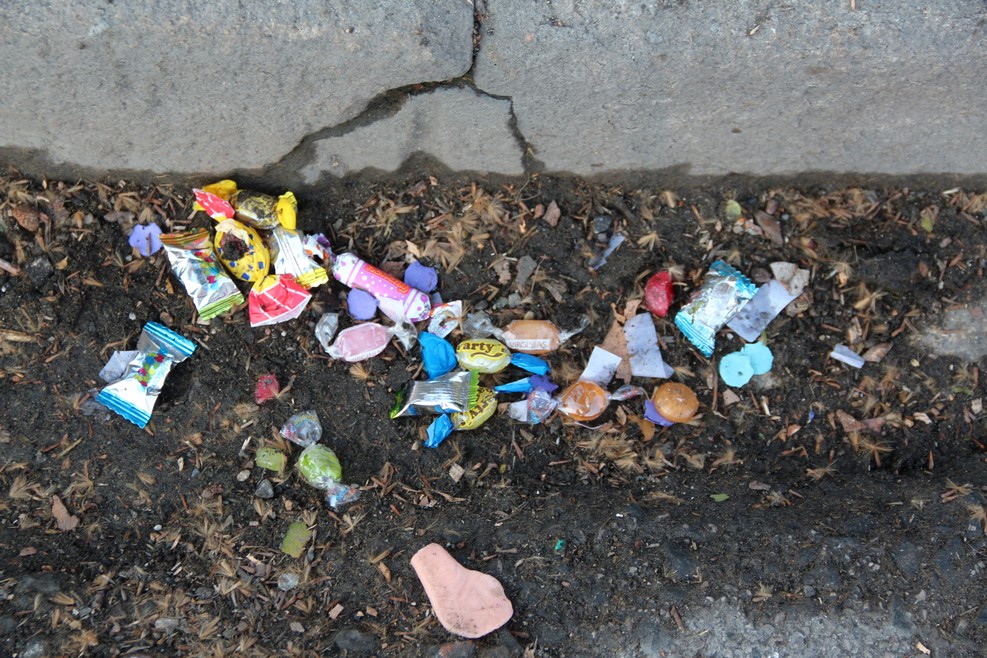 Но конфет было так много, что даже после уборки их валялось великое множество: