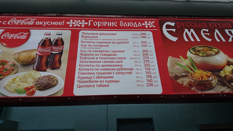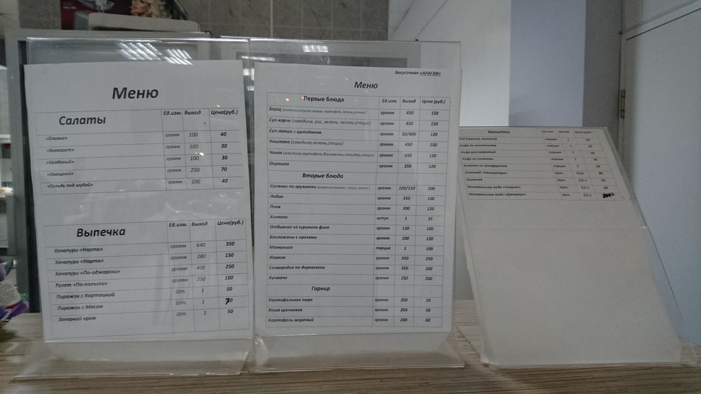 Еда на склоне стоит не дешево, но нас спасало большое количество ресторанов около гостиницы. В день примерный расход на еду на двух человек составлял 1000-1500 рублей. Так же можно питаться в столовых, там отличная домашняя еда и большие порции, уровень цен:
