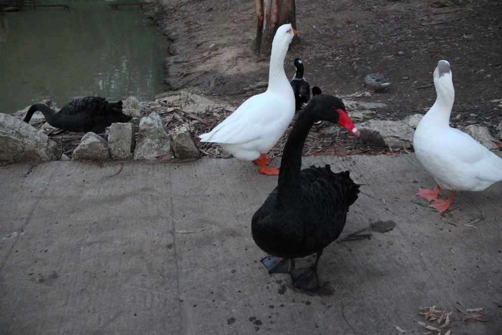 Страус почему-то грыз железную ограждающую сетку (найдите черную котю smile ):