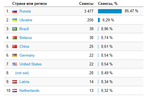 Тут главная неожиданность, это количество любителей моих страничек из Бразилии