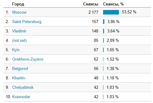 Распределение по городам: