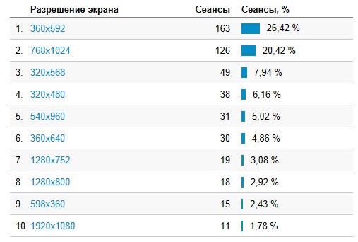 Распределение по разрешениям мобильных устройств: