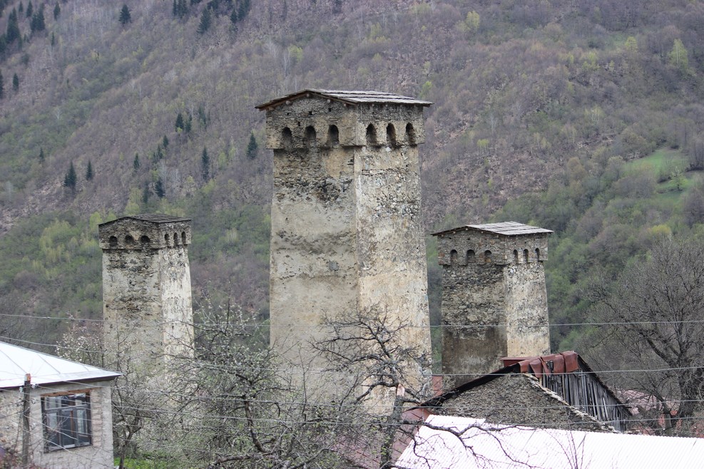 Ближе к цели нашего путешествия, поселку Местия, нам начали попадаться сванские башни: