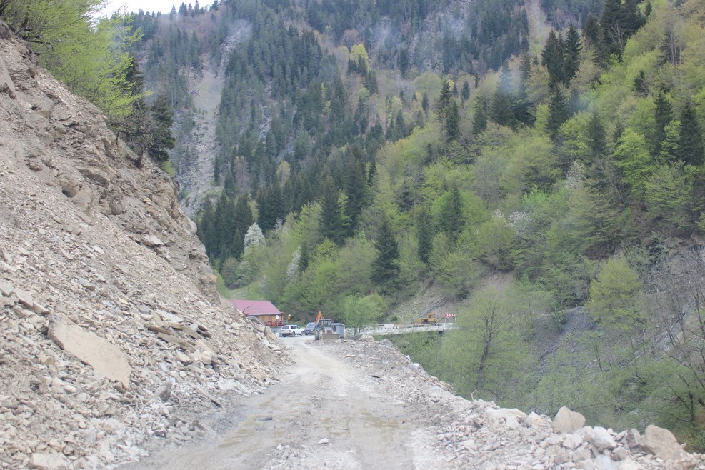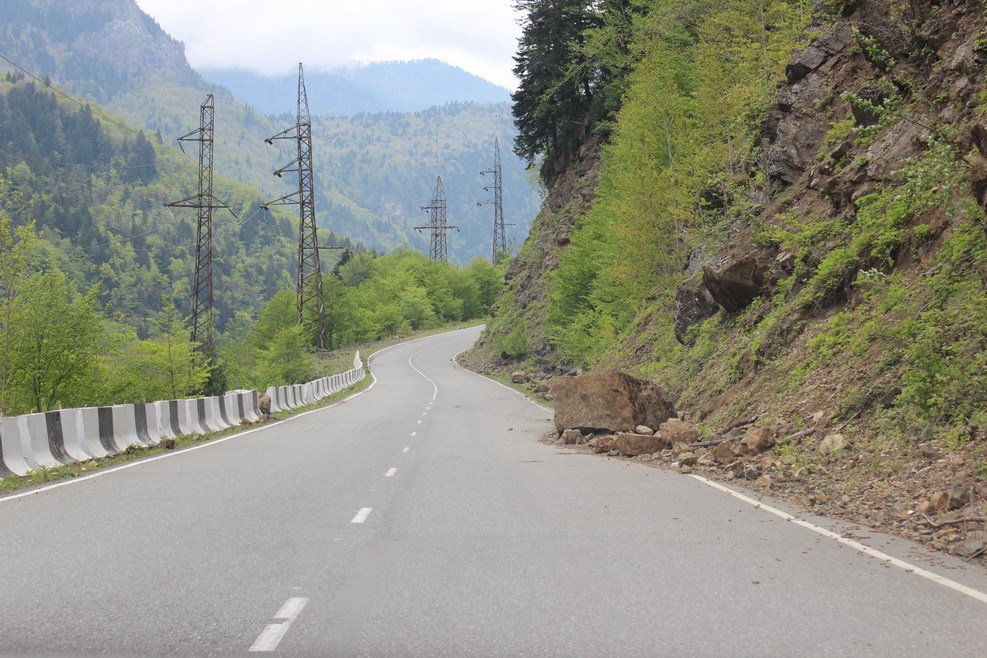 Дорога в горах оказалась на твердую троечку. Очень сильно нас доставали упавшие камни, которые попав между колес, ощутимо сильно стучали об защиту днища: