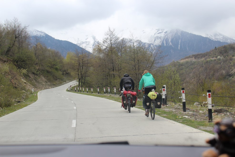 Мы ехали в горах на машинах, но нам попадались более отчаянные ребята: