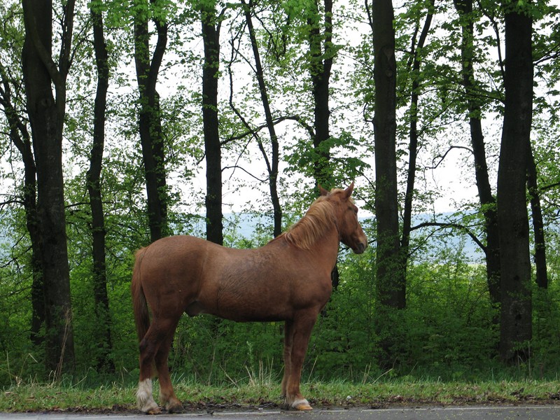 На Украине очень активно используют конную тягловую силу, по этому часто можно увидеть коня, пасущегося около дороги: