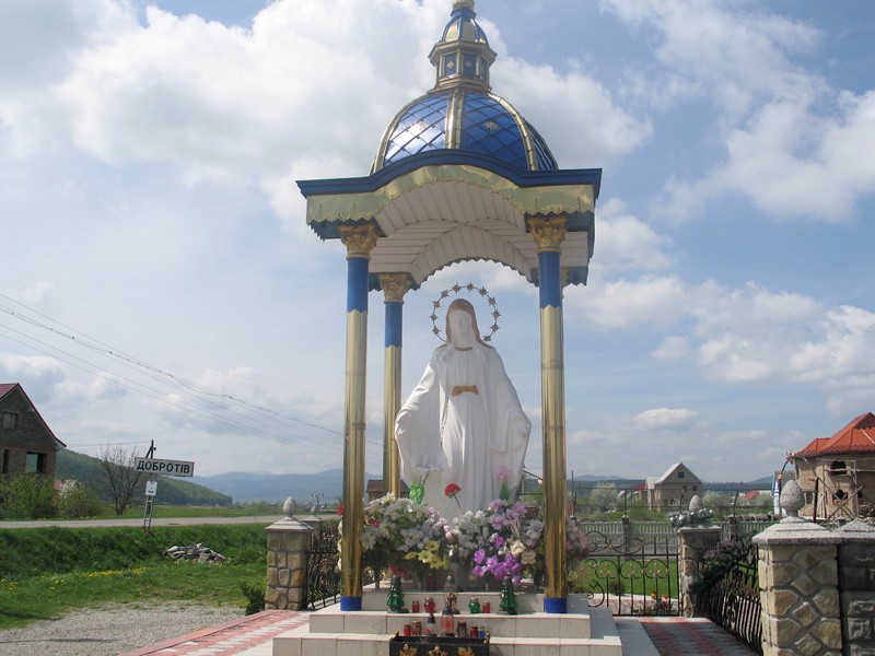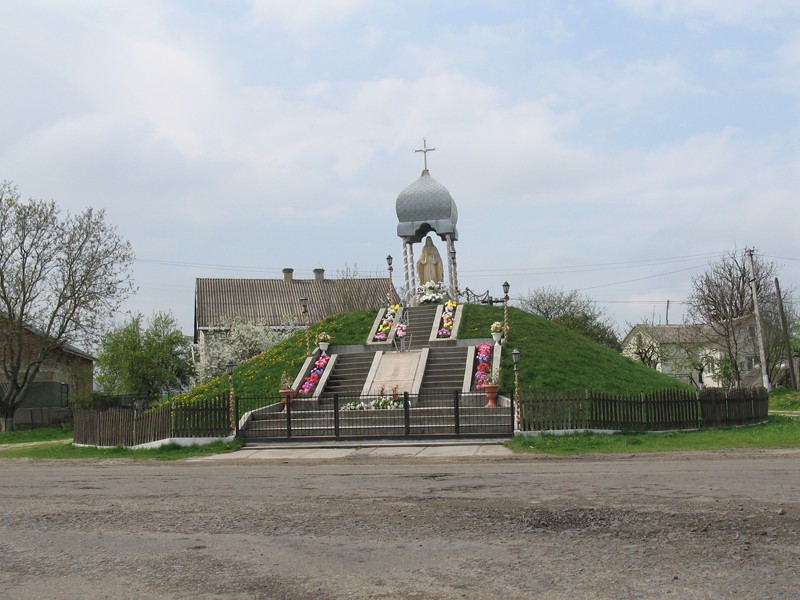 На въезде в деревни и поселения в восточных районах стоят кресты, а на западе вот такие скульптуры: