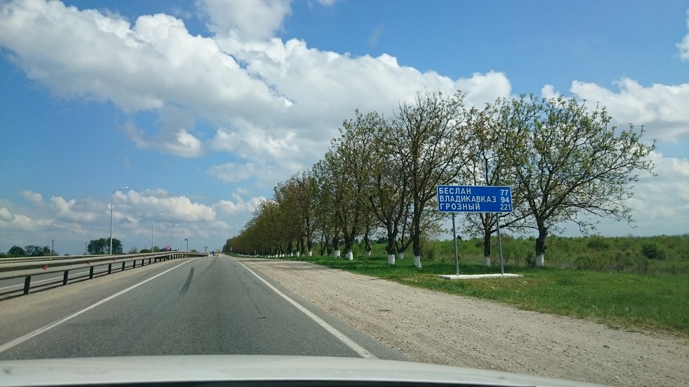 [gmap hratio=»66.66″]!1m34!1m12!1m3!1d1498336.0847318752!2d43.84726402640074!3d42.82136795374431!2m3!1f0!2f0!3f0!3m2!1i1024!2i768!4f13.1!4m19!3e0!4m5!1s0x4057a389051f9f15%3A0xce4d3adc1d5edab8!2z0JzQuNC90LXRgNCw0LvRjNC90YvQtSDQktC-0LTRiywg0KHRgtCw0LLRgNC-0L_QvtC70YzRgdC60LjQuSDQutGA0LDQuQ!3m2!1d44.216667!2d43.133333!4m5!1s0x405aa4443c0a6691%3A0x13c56a16c945d6cf!2z0JLQu9Cw0LTQuNC60LDQstC60LDQtywg0KDQtdGB0L_Rg9Cx0LvQuNC60LAg0KHQtdCy0LXRgNC90LDRjyDQntGB0LXRgtC40Y8t0JDQu9Cw0L3QuNGP!3m2!1d43.016667!2d44.65!4m5!1s0x40440cd7e64f626b%3A0x61d084ede2576ea3!2z0KLQsdC40LvQuNGB0LgsINCT0YDRg9C30LjRjw!3m2!1d41.716667!2d44.783333!5e0!3m2!1sru!2sru!4v1433349936193[/gmap]В этот день нам предстояло проехать 400 километров. Как только выехали из Пятигорска, сразу переехали границу с Кабардой: