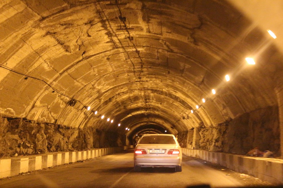 На грузинском КПП все пассажиры вышли из машины и проходили границу в отдельном коридоре (такое я первый раз увидел при прохождение финской границы в прошлом году). Машины с водителями проходят границу обычным порядком. Необычно стало то, что багажник машины досматривать не стали. Кроме того, пограничник, который ставил штамп в паспорт, спросил, есть ли у меня в машине георгиевские ленточки. Ленточек у меня не было, и я поехал дальше. Грузинскую часть Военно-Грузинской дороги мы проехали в темное время суток, поэтому эту часть дороги я покажу Вам чуть позже (на обратном пути мы записали видео на регистраторе). Заранее только скажу, что эта часть дороги в целом нормальная, однако есть два небольших участка совсем без асфальта. Вот в таких боевых условиях Олькина джетта встретила свой «111111» юбилей пробега: