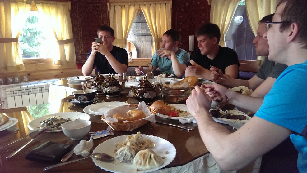 За городом мы решили покушать. Остановились в узбекском ресторане, в котором каждый стол находился внутри отдельно стоящего домика: