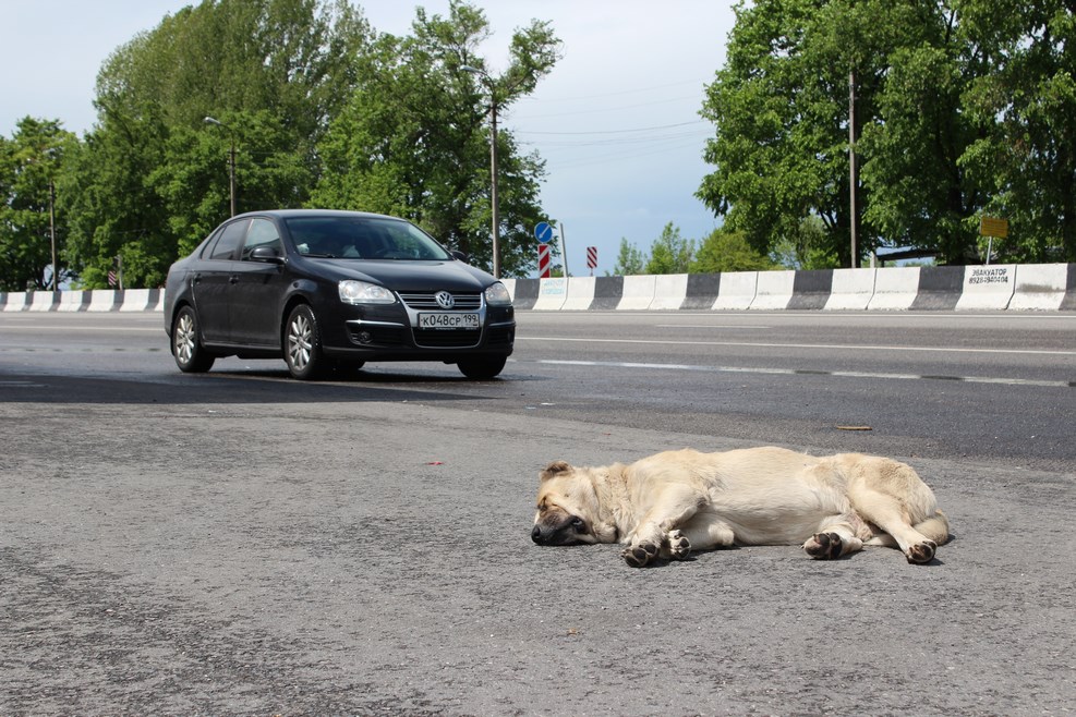 Коровы знают, где безопасно перейти дорогу. Эта переходит около поста ГИБДД под присмотром инспекторов: