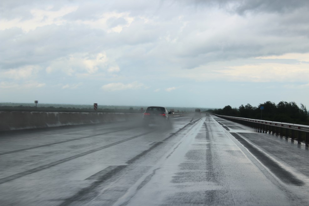 Покрытие было плохим только в Ростовской области, из-за этого неважные участки дорог грузовики объезжали в левом ряду (а мы их обгоняли справа):