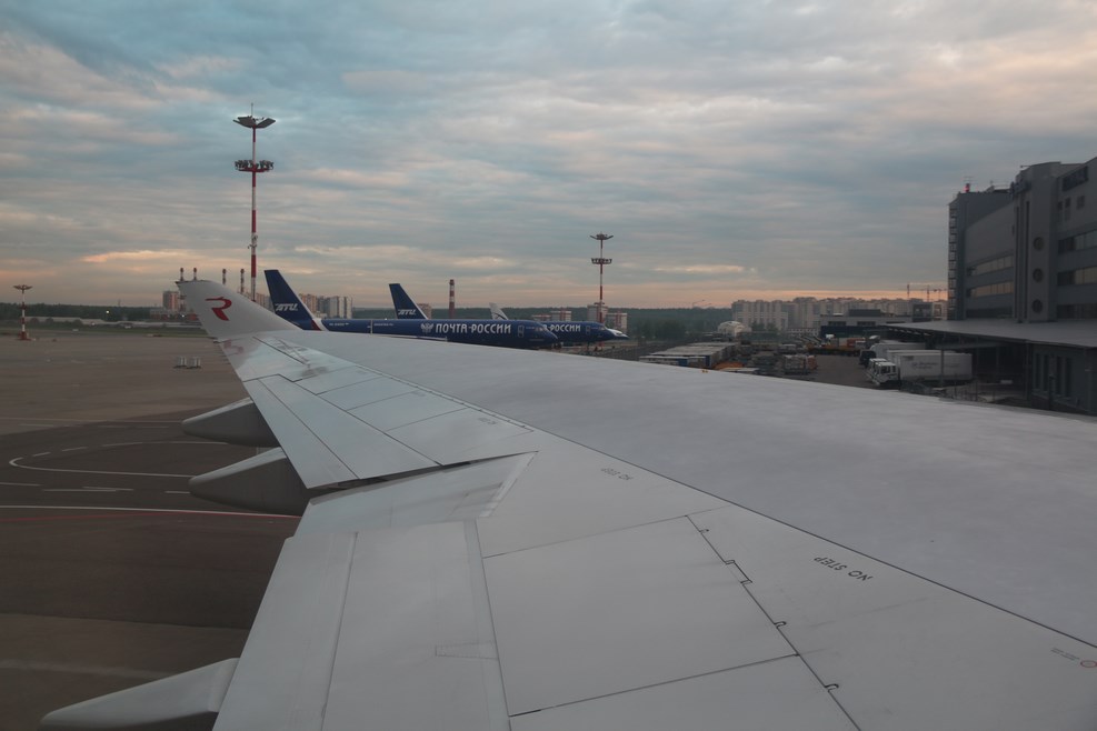 Туда летели прямо над крылом. Первый раз увидел, что у почты России тоже есть свои самолеты: