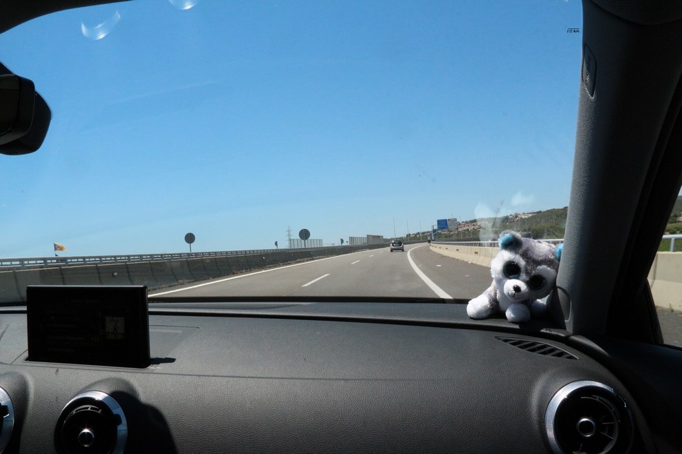 Ой, а что это там находится в дальнем углу на последней фотке? Так это же наша Макаронка! Да, да. Наша неизменная спутница была с нами и в этой поездке, и проехала не одну сотню километров по каталонским дорогам: