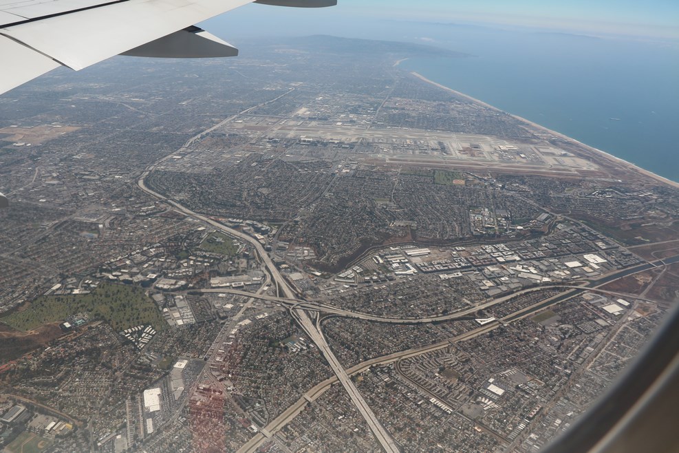 Через полтора часа мы уже сидели в самолете, который должен был нас доставить в Лос-Анджелес. Информационное табло в спинке переднего сидения показывает, что время вылета 10:41, прилетим мы в 13:07 того же дня, хоть и лететь будем 11 часов 26 минут: