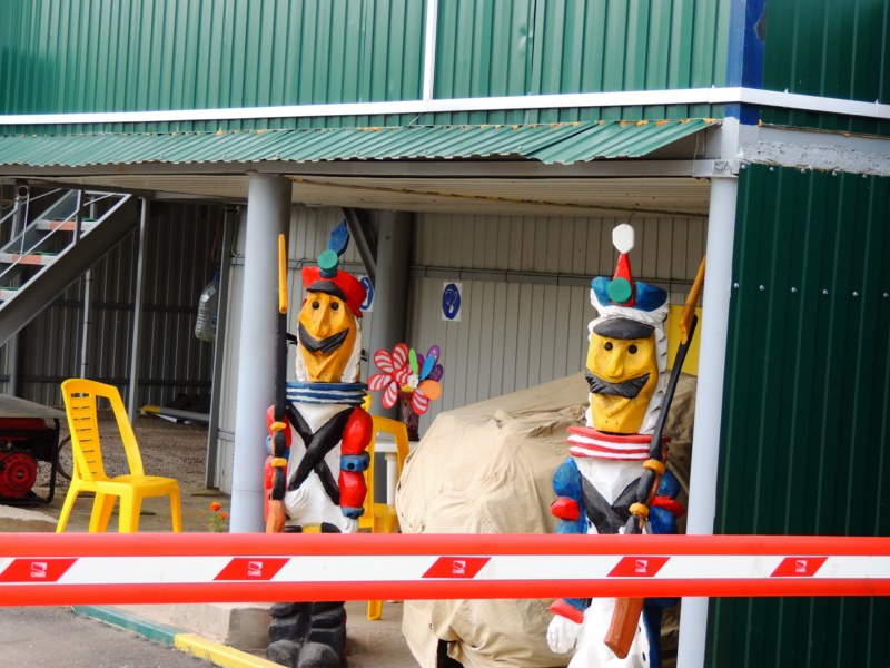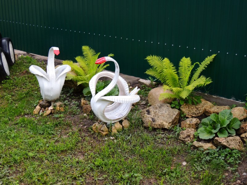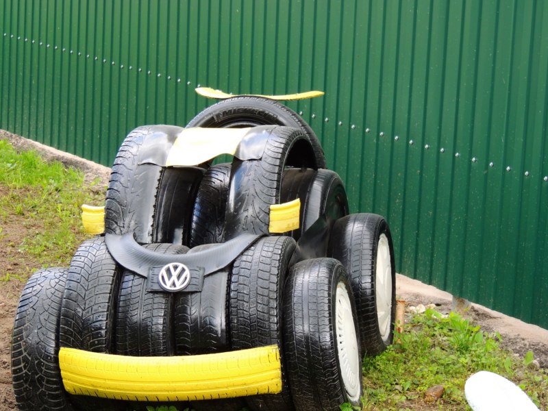 Около парковки, сделанные из шин фигурки: