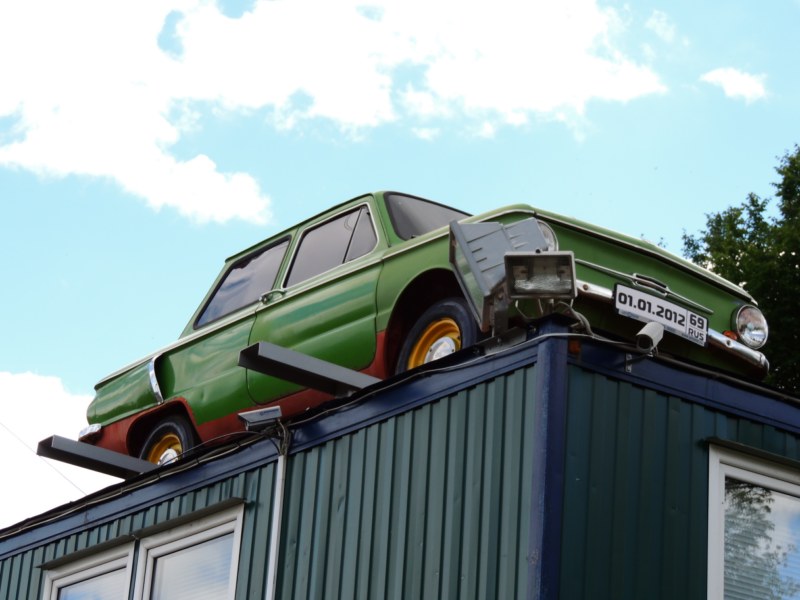Около музея находится необычно оформленная платная парковка: