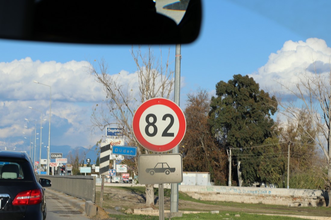 Дальше мы поехали в древний город Аспендос. Он находится в 35 километрах от Антальи. По пути увидели странное ограничение скорости в 82 км. в час: