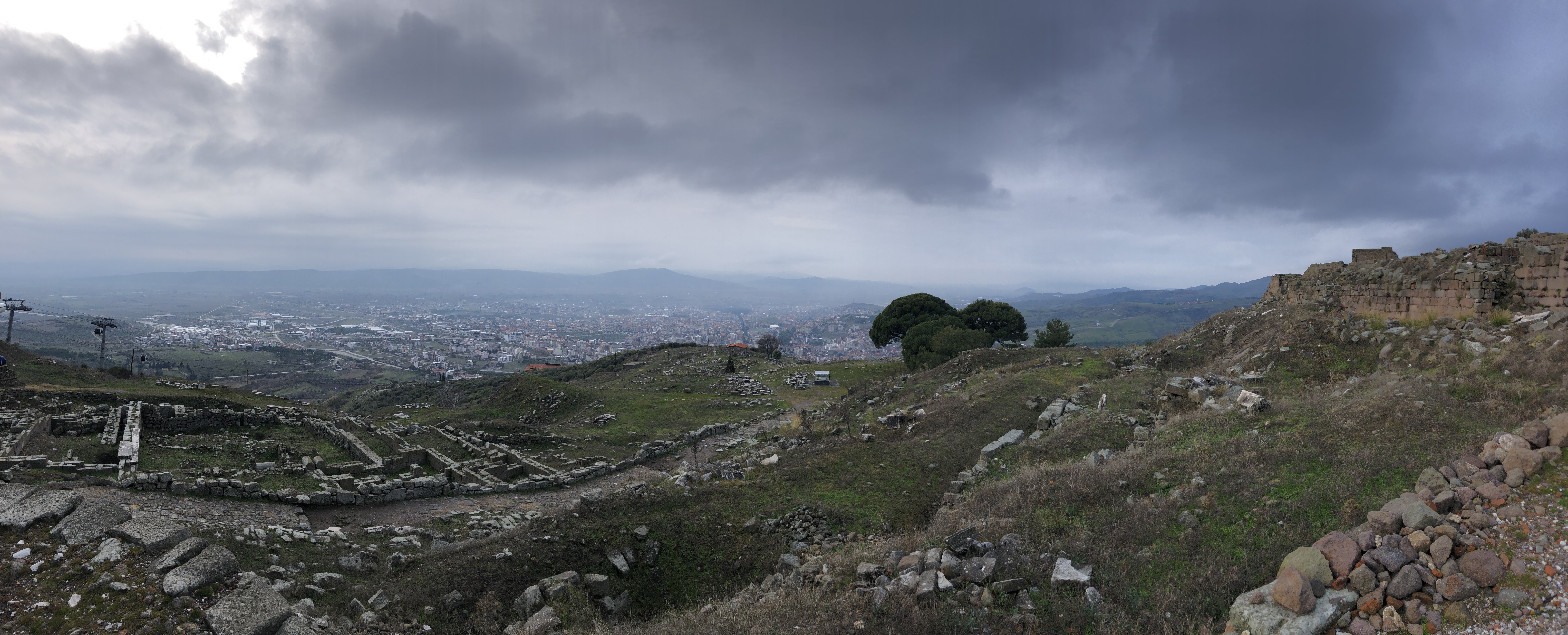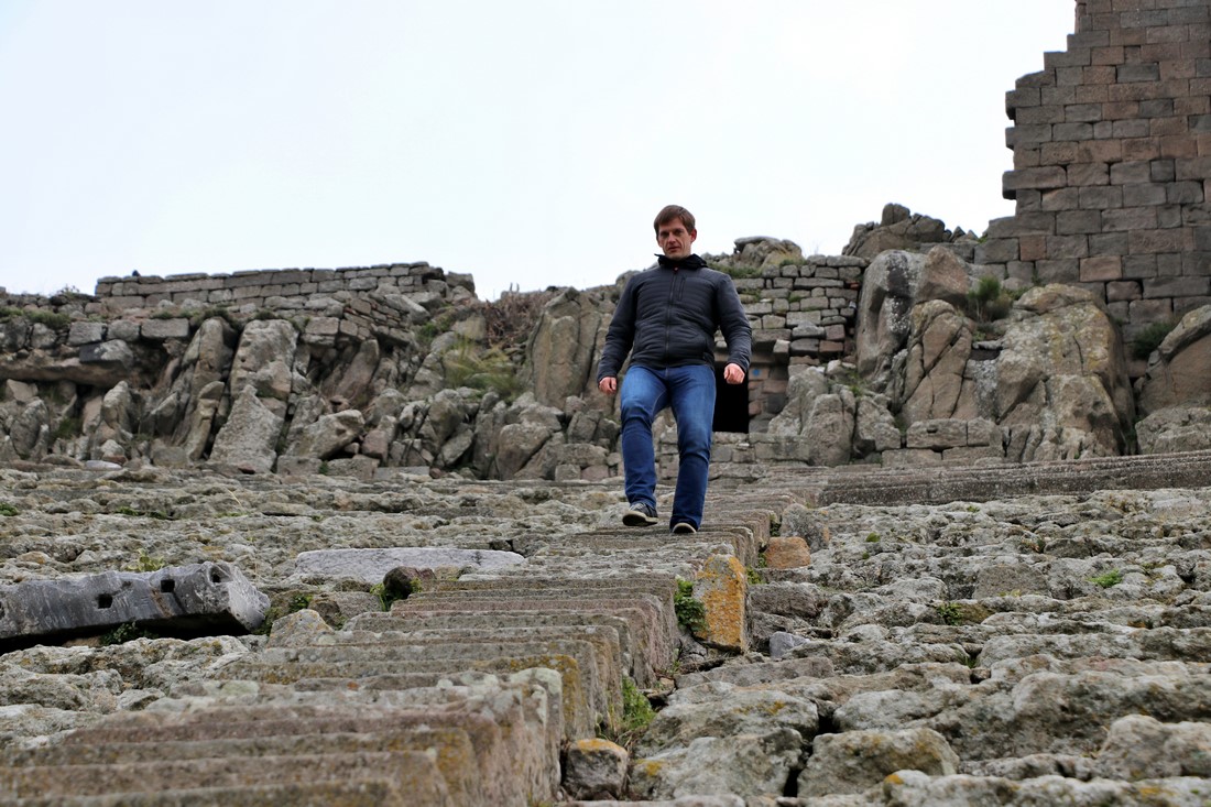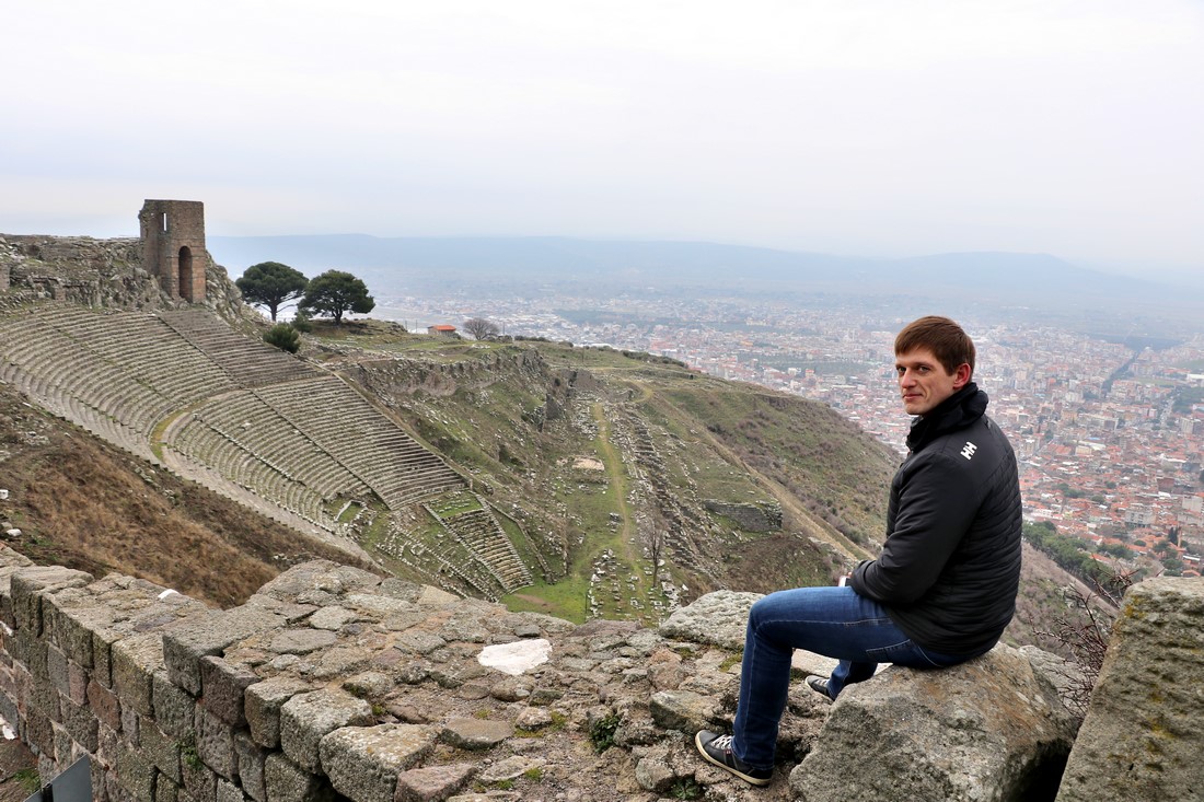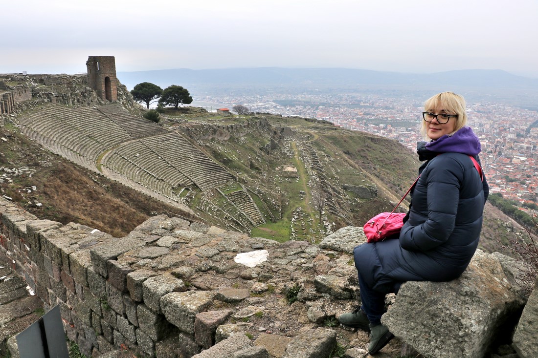 Утром поднялись в акрополь старинного города Пергам. Мы туда ехали на машине, но желающие могут подняться и по канатной дороге: