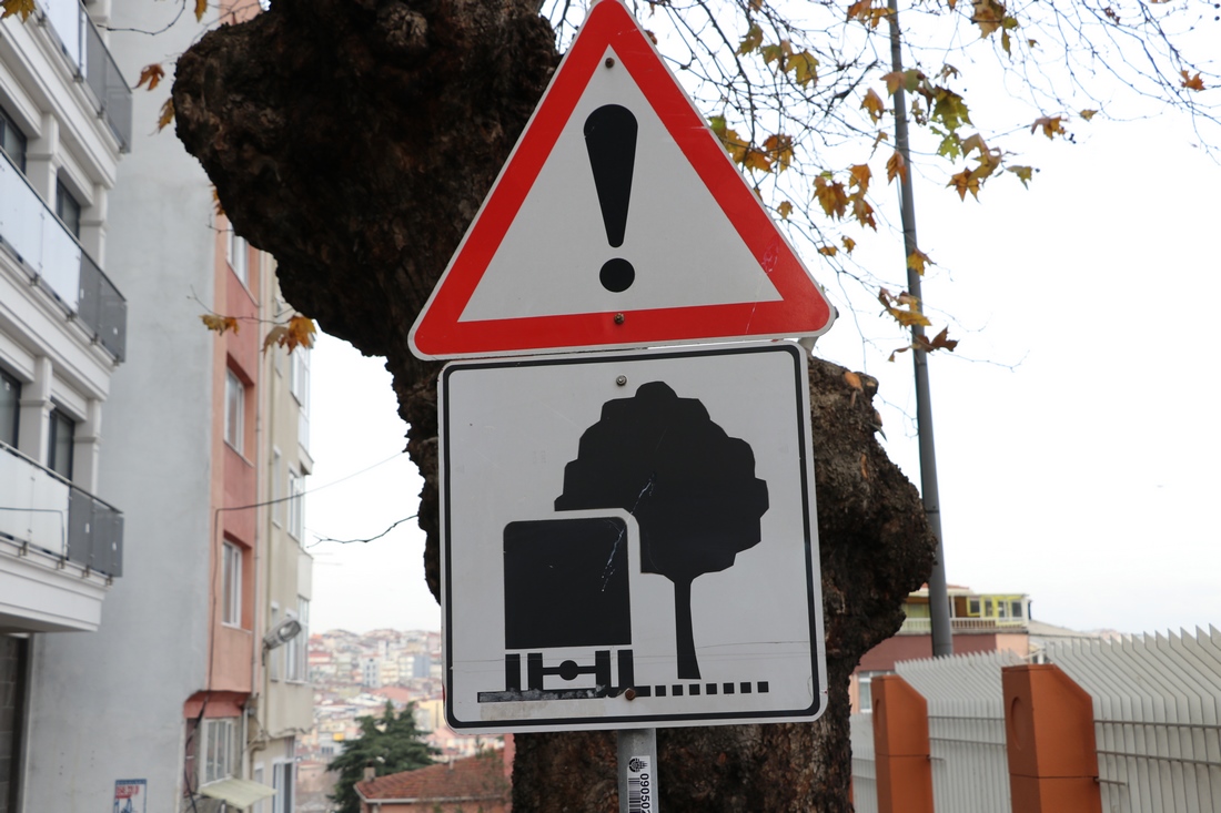 Знак, предупреждающий о близкой к дороге листве дерева:
