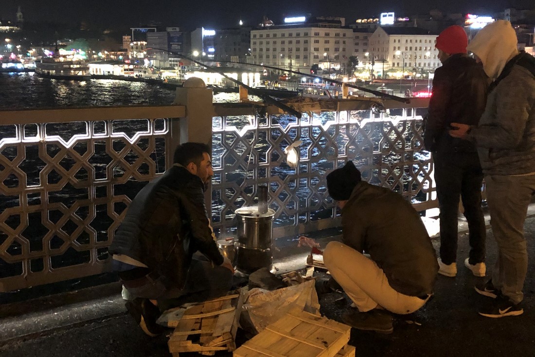 Люди на мосту жгут костры и ловят рыбу. Самое забавное, что тут они и встретили Новый Год:
