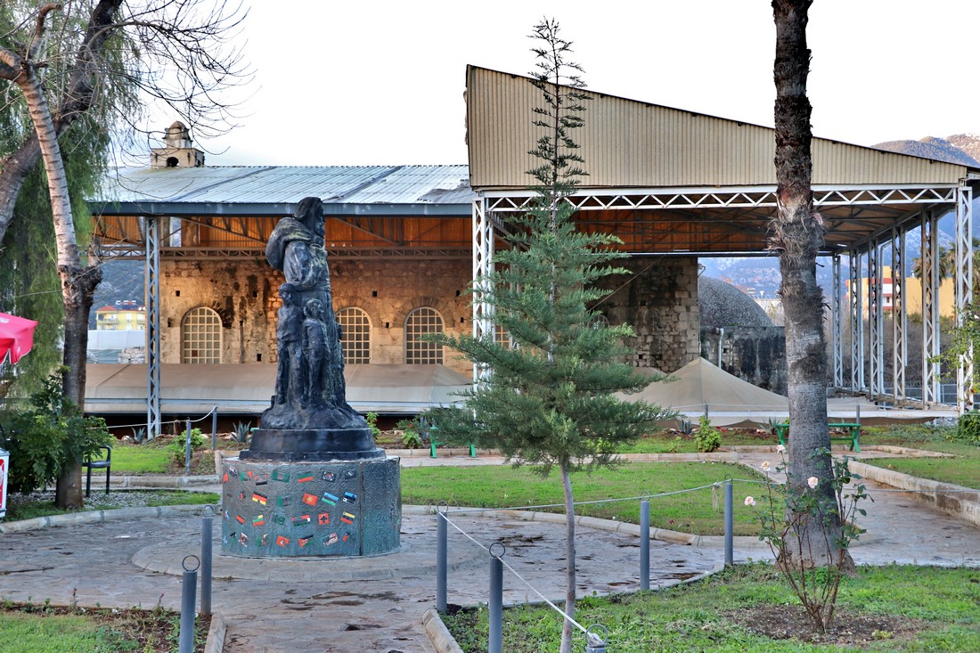 В церковь мы не успели, продажу билетов закончили прямо перед нашим приходом. Памятник на входе: