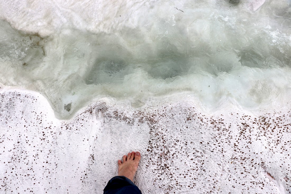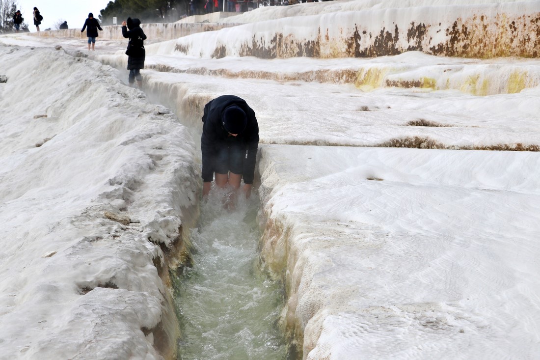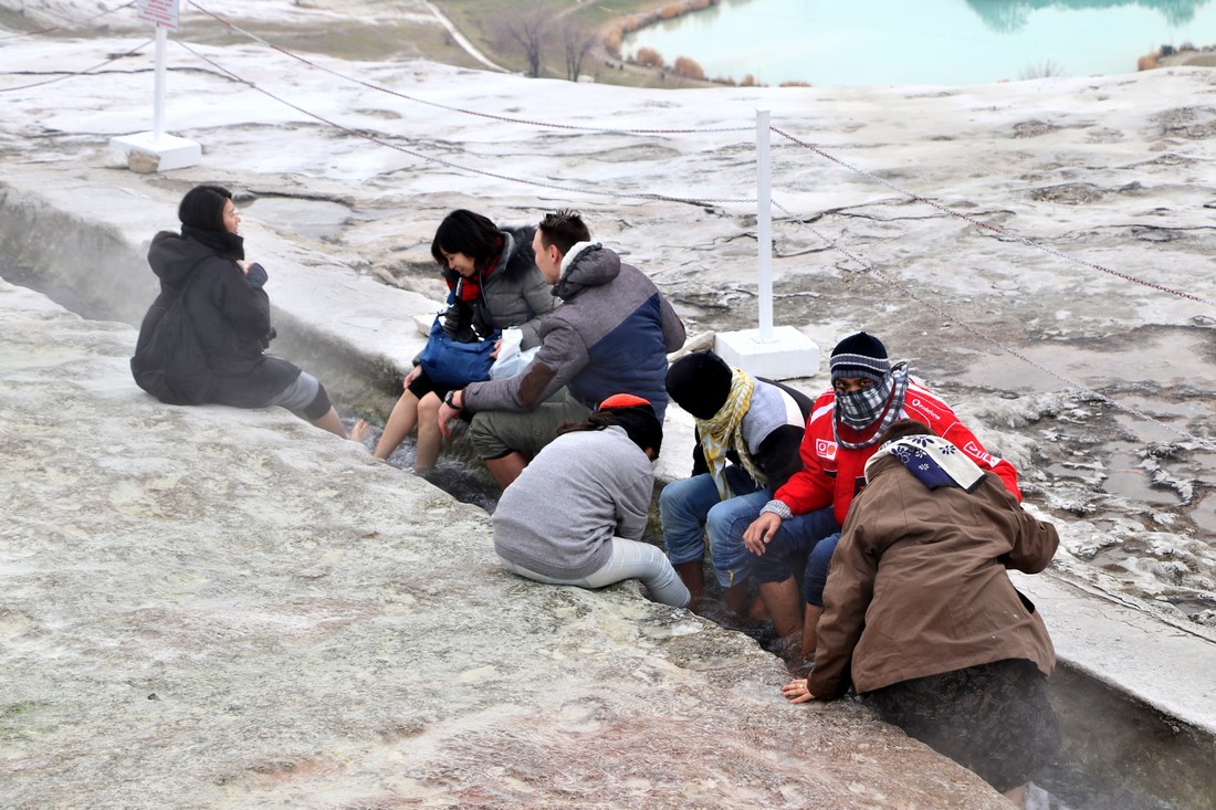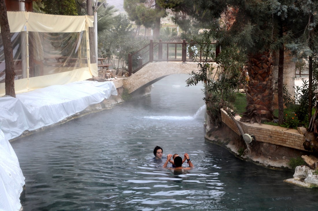 Поэтому люди либо быстро перебегают от бассейна к бассейну, где течет горячая вода из термального источника: