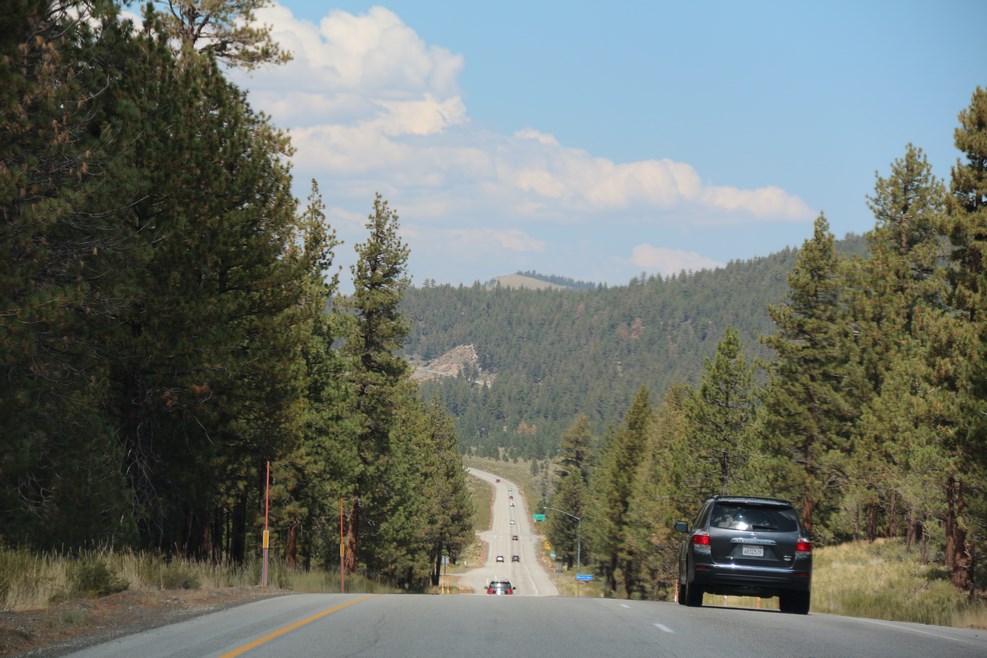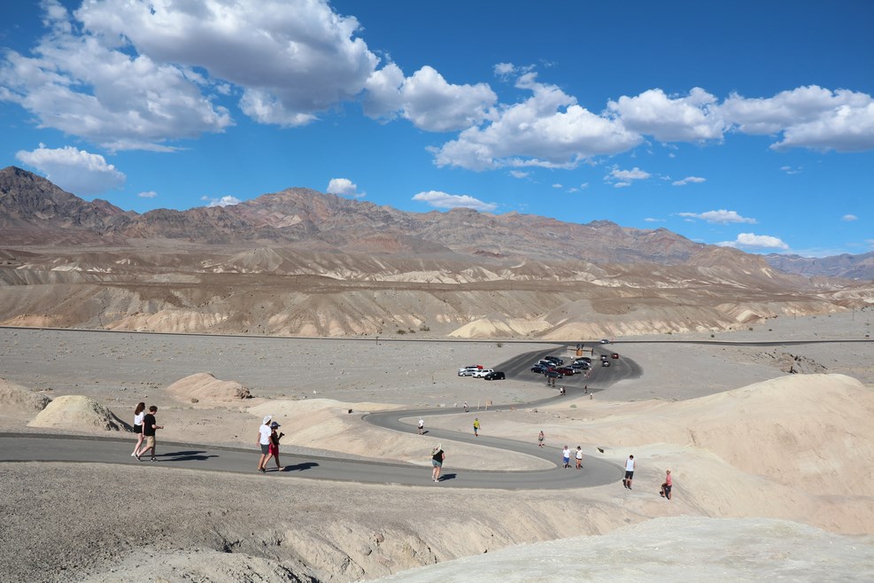 Из-за ужасной жары в парке мы посмотрели не все открытые для посещения места. Первая наша остановка была на смотровой площадке «Пирамид Пик». Пройти вот это небольшое расстояние под палящими лучами солнца от машины до места осмотра оказалось совсем непростым делом: