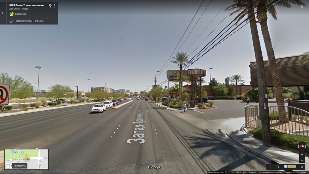 Есть и довольно неприятные моменты. На дороге может быть поворот на прилегающую территорию аж через три полосы встречного направления (взято с гугл-карт, поворот к нашей гостинице в Лас-Вегасе):