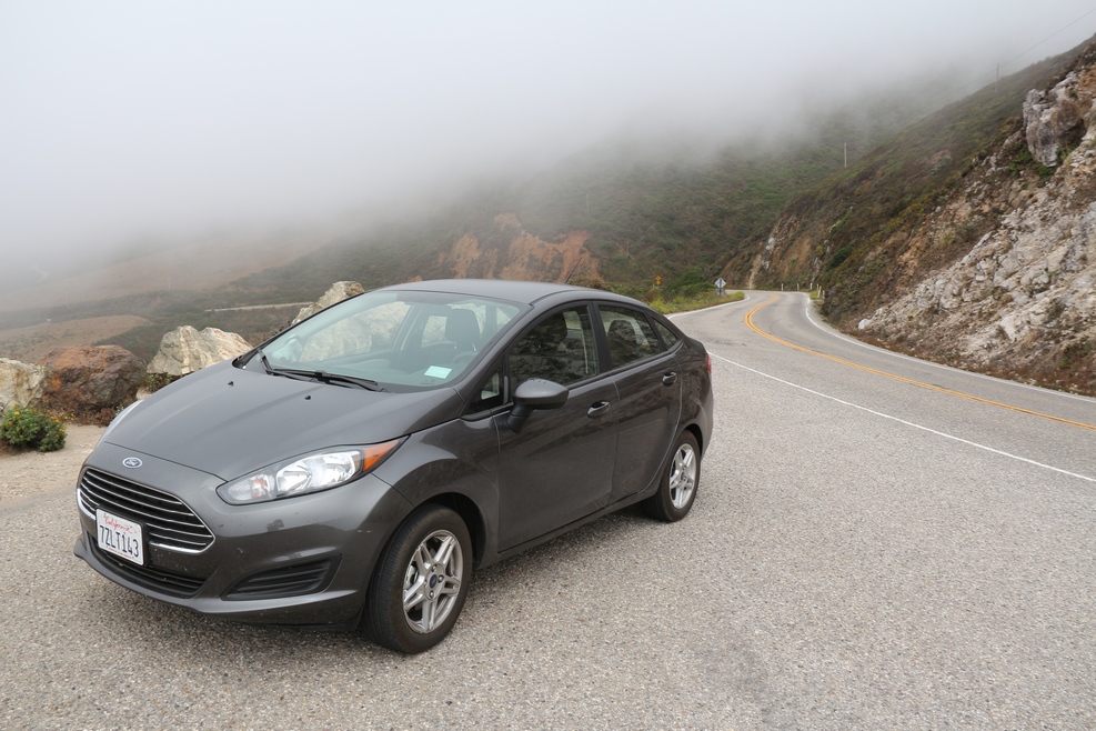 На одном из таких участков дороги недалеко от Санта-Барбары скорость участникам движения задавал пилотный автомобиль: