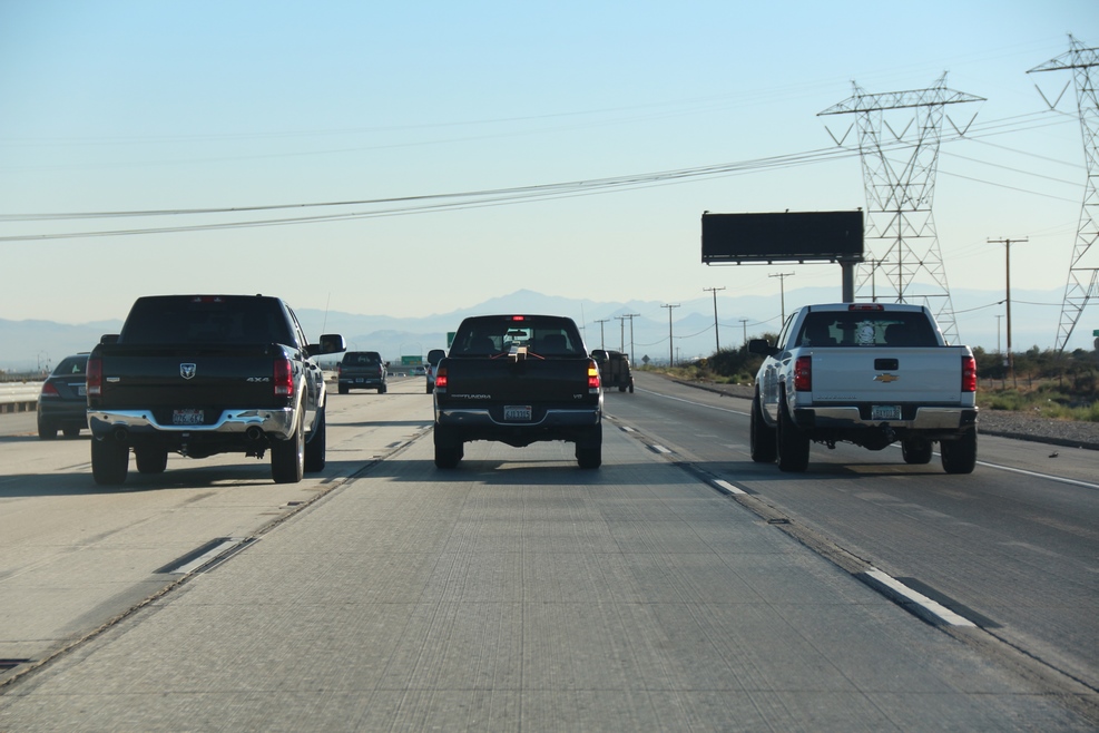 Через некоторое время мы уже были на хайвэе. В потоке с нами было огромное количество пикапов и чем дальше от города, тем больше их встречалось на нашем пути: