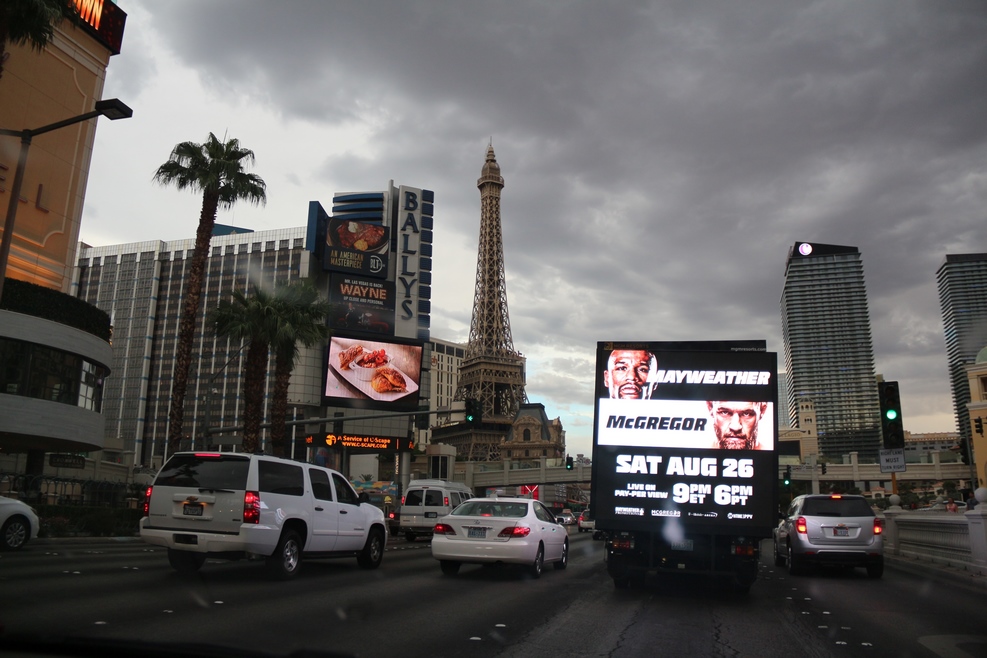 В Лас-Вегасе видели передвижную рекламу. Мобильные экраны показывали ролики пешеходам и участникам движения: