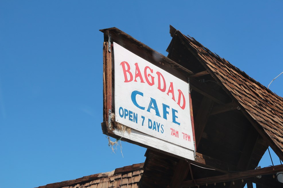 [gmap mapid=1]!1m18!1m12!1m3!1d419258.20923971035!2d-116.92345597263262!3d34.81965698040418!2m3!1f0!2f0!3f0!3m2!1i1024!2i768!4f13.1!3m3!1m2!1s0x80c4f0d20ac20fbd%3A0xbb635b01333e4225!2sBagdad+Cafe!5e0!3m2!1sru!2sru!4v1510815564441[/gmap]Если верить памятной табличке, это кафе снималось в одноименном фильме: