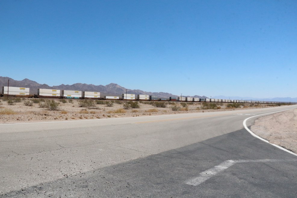 Кстати, поезда в США возят контейнеры по два на платформе, и бывают очень длинными: