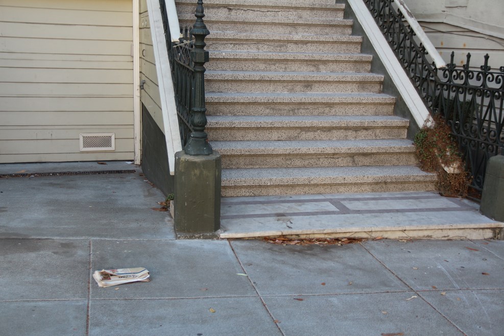 Через некоторое время ставим машину на парковке. Рядом газета валяется около дома. Она отнюдь не выброшена. Почтальон так раздает почту, просто выкидывает из машины газету к крыльцу, а хозяева потом ее подбирают: