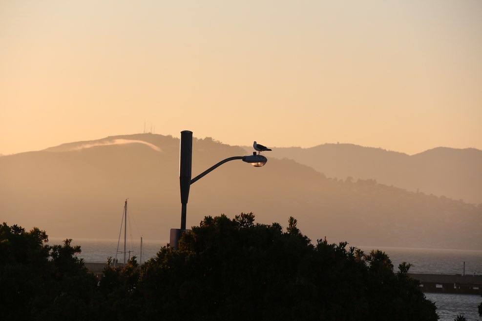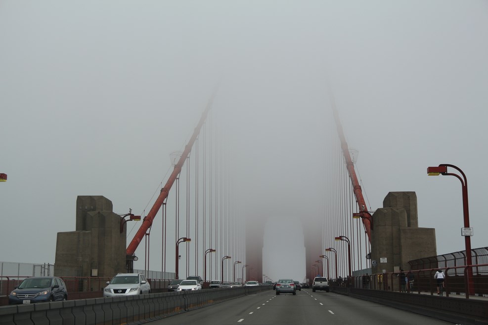 С ветром нам не повезло, мост скрывался под толстым слоем дымки: