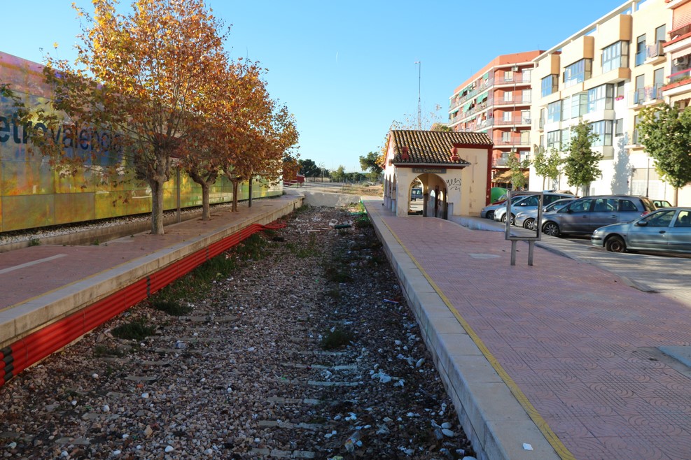 В некоторых местах метро едет над землей, но его активно убирают под землю. Вот тут рядом с входом в подземную станцию еще стоит старая наземная станция с засыпанными щебенкой путями:
