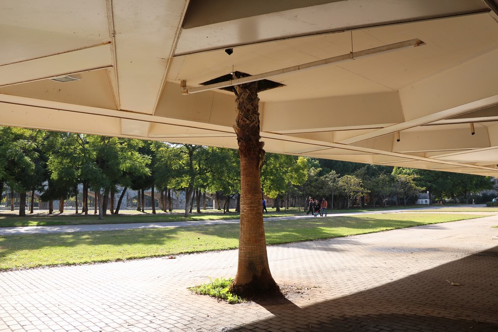Естественно весь парк мы не проходили, но пару километров по нему погуляли, пока шли от метро до «города искусств и наук» о котором я расскажу чуть позже. Пальма растет сквозь мост: