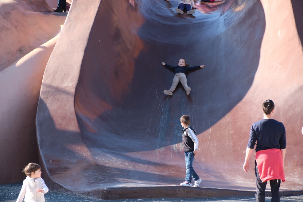 Дети с радостью катаются прямо со складок одежды Гулливера: