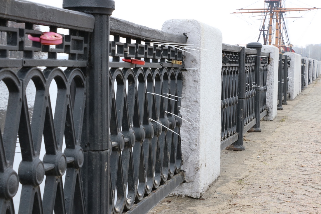 Кроме замочков на ограде висит еще множество стяжек, интересно зачем?:
