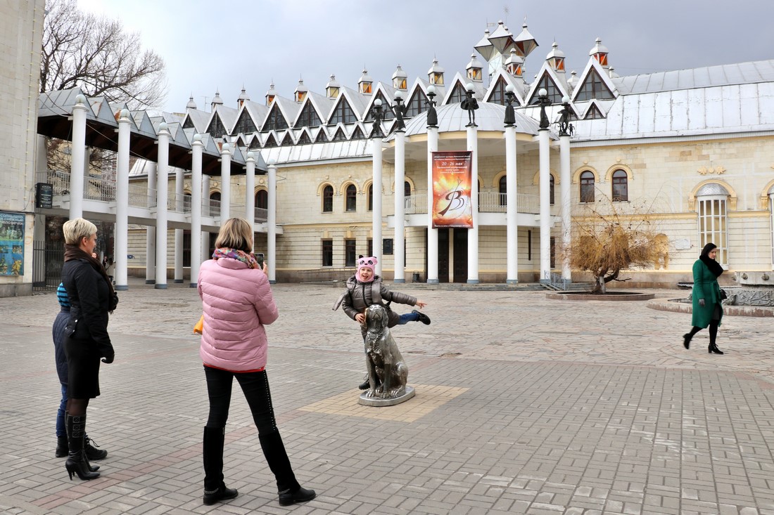 Собака около кукольного театра: