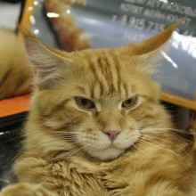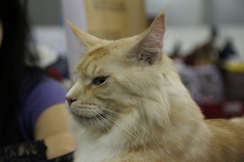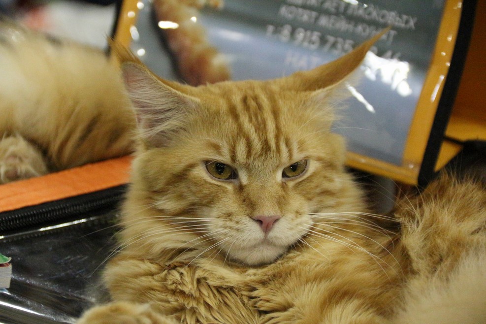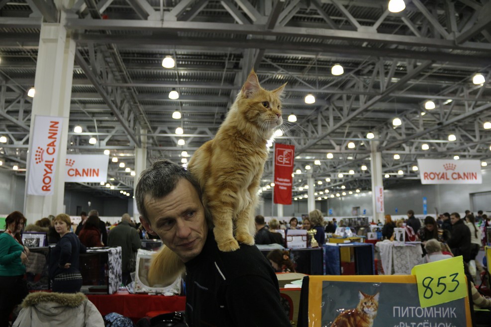 А этот наглый рыжий кот породы «мейн-кун» созерцал окрестности со своего хозяина: